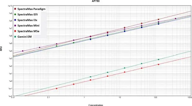図8. SpectraMaxマイクロプレートリーダーで読み取ったAlexa Fluor 750の標準曲線
