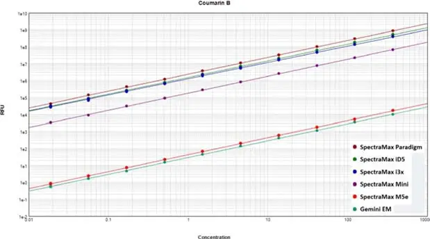 図3. SpectraMaxマイクロプレートリーダーで読み取ったCoumarin Bの標準曲線