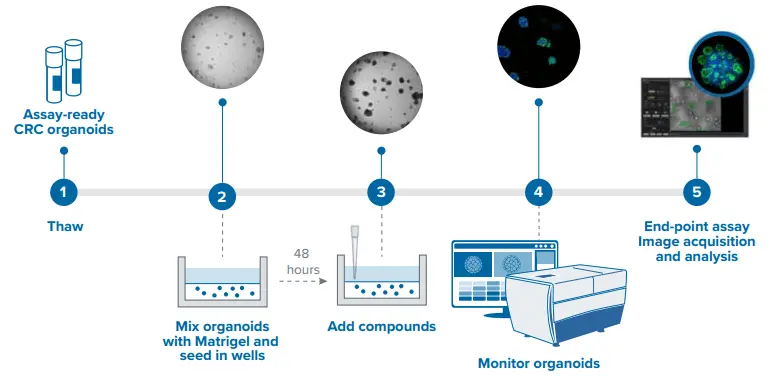 図2.アッセイ対応済み大腸がんオルガノイドの使用ワークフロー