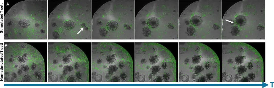 - ImageXpress Confocal HT.ai ハイコンテントイメージングシステムを用いて、T細胞とオルガノイドの相互作用をタイムラプスで観察しました。