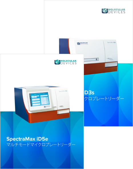 SpectraMax® iD3sおよびiD5eマルチモードマイクロプレートリーダーは、吸光度、蛍光、発光アッセイに対応した柔軟で拡張性のあるソリューションを提供します。iD3sは、温度制御機能と波長調節可能なモノクロメーター方式の光学系を備えたシンプルなコストパフォーマンスの高いプラットフォームです。一方、iD5eは吸光、蛍光、発光、時間分解蛍光(TRF)、蛍光偏光(FP)の5モードで高度な測定が可能です。ハイブリッド光学系、タッチスクリーンインターフェース、温度制御機能により、複雑なアッセイに柔軟性と精度をもたらします。オプションのアップグレードには、発光下方測定、TR-FRET(HTRF® を含む)、ウェスタンブロット検出のほか、両モデルとも、オプションでデュアルインジェクターに対応しています。
